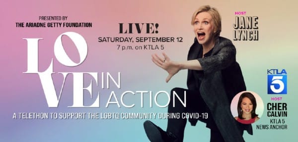 The first ever live telethon in support of Los Angeles’ LGBTQ+ centre has raised around $1.3 million in donations to aid the community during the COVID-19 pandemic. Love in Action was presented by the Ariadne Getty Foundation – an organisation that provides investments to power equality movements – and hosted by actor and LGBTQ+ icon Jane Lynch alongside KTLA 5 news anchor Cher Calvin. RuPaul’s Drag Race star Manila Luzon also featured as the telethon’s donations collector.