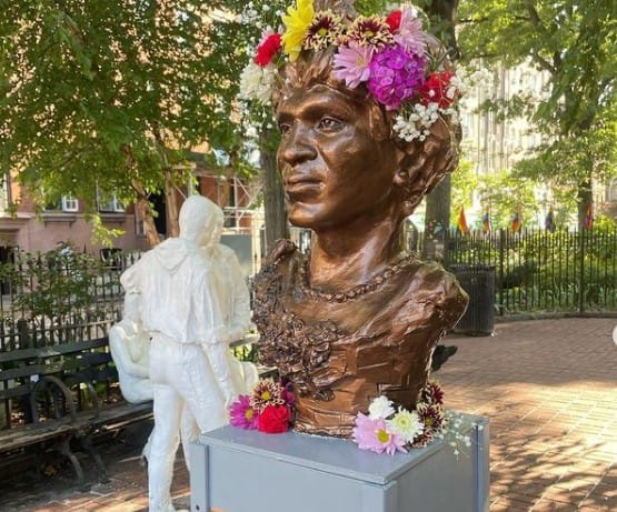 Announcing the news on Instagram, sculptor Jesse Pallotta said that the statue is a “small way to say thank you to all the black trans women who have paved the way for my life, and the lives of other queers and sex workers, to live a safer and more authentic life.” They also noted that visitors are welcome to add fresh flowers to Johnson’s crown, as this was her signature accessory.