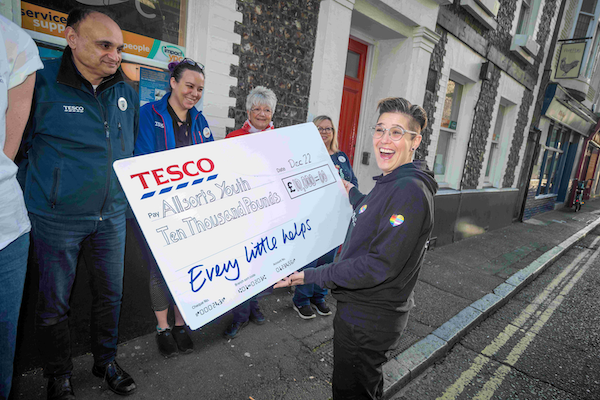 When the Allsorts Youth Project team turned up to receive the funds, they thought they were being given £500 from Tesco’s Community Grants scheme, but were instead presented with a £10,000 cheque.