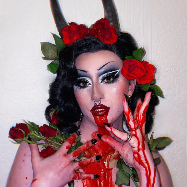 “In drag, I’m really drawn to female characters in horror movies. There’s a power and an ‘otherness’ encapsulated in the hyperfemininity of the characters of the horror genre that really resonates with me. With my drag, I want to focus on that otherness and femme power I embody, and harness it.”