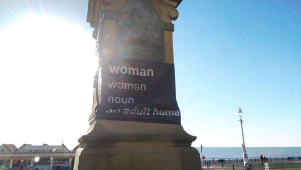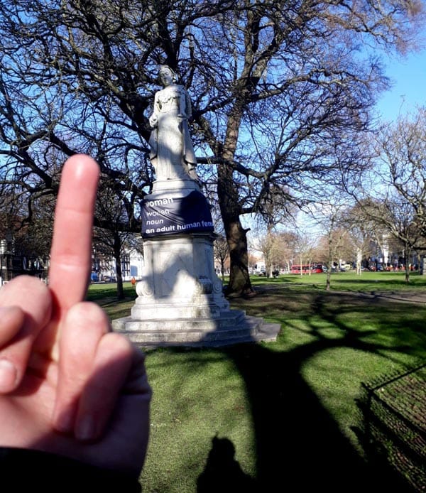 THE campaign, which targeted significant monuments in towns and cities across the country including Brighton & Hove’s Peace Statue, The Brighton & Hove AIDS Memorial, The Victoria Statues in Valley Gardens and Grand Avenue and two of the pediment statues at the Clock Tower, involved draping banners and t-shirts across them bearing the statement Woman, Women, Noun – an adult female. There was also a banner draped across the A23 on entering the city.
