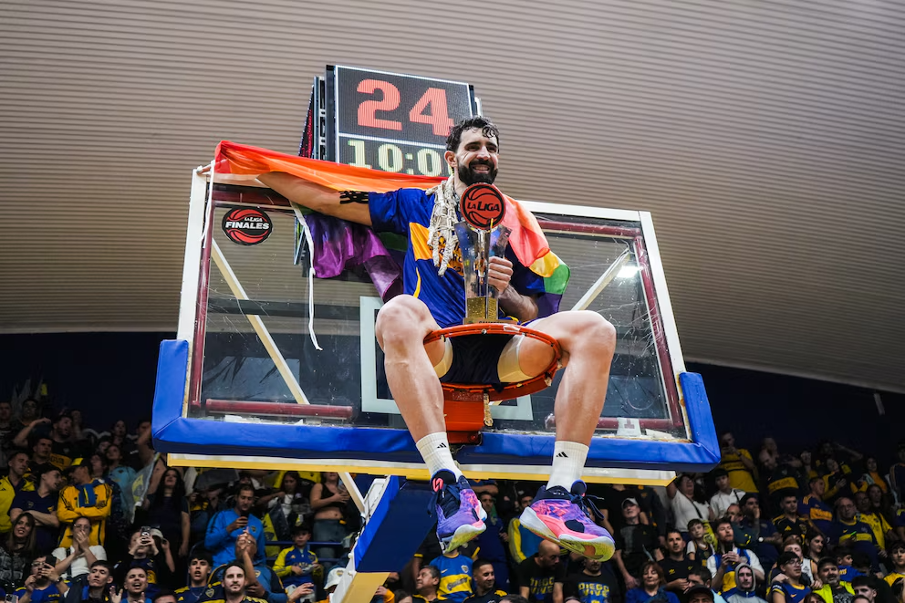 Sebastián Vega, the first gay Argentinian professional basketball player, is celebrating after his club, Boca Juniors, were crowned champions of Argentina’s National Basketball League for the fifth time in their history, following a dramatic final victory over Instituto de Córdoba. The celebrations reached an emotional peak when Vega, one of the team’s standout players, climbed onto the hoop and unfurled the LGBTQ+ Pride Flag - a powerful gesture that resonated far beyond the court.