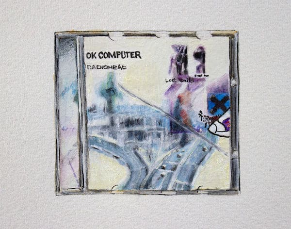 Her repeated use of byproducts of our consumerist fast culture, allowing the painted records to be more timeless than what initially inspired them. The instantly recognisable visage of a South Park Kenny figurine, the apparently normality of bottles, jugs, funnels, the reflective surfaces of silver, copper and glass, the infinite variety available in the deluge of CD album design. Nothing is off limits if it connects with the artist and her creative impulse to make them that bit more memorable than would be expected in daily life.