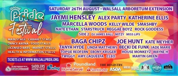 Over in the Dance Tent, attendees of Walsall Pride will find Joe Hunt, Katie Meyher, Becki De Funk, Jade Marie, House Monkeyz, Wayne H, and Martin Green. While the Main Stage – hosted by Miss Lips and Mitzy – will have performances from Jamie Hensley, Alex Party, Katherine Ellis, Marcella Woods, Kelly Wilde, Smashby, Nate Ethan, Startstruck, Reggae Boyz, Rock Goddess, Side 2, and DJ James Ball.