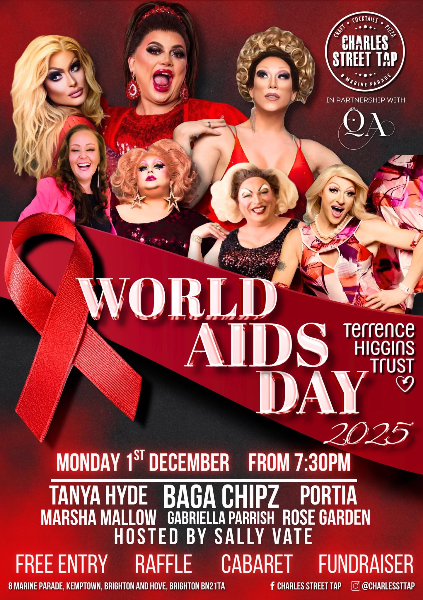 Hosted by the incredible Sally Vate, and raising funds for Terrence Higgins Trust, the event will feature performances from Tanya Hyde, Portia, Marsha Mallow, Gabriella Parrish, Rose Garden and Baga!