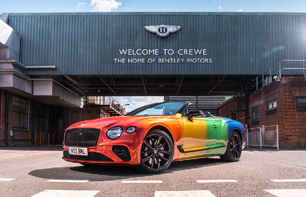 Luxury car maker Bentley has unveiled a one-off rainbow covered convertible to celebrate its partnership with Cheshire East Virtual Pride. The Crewe based manufacturer will showcase the Continental GT Convertible V8 via streaming at the event on Saturday 25th July.
