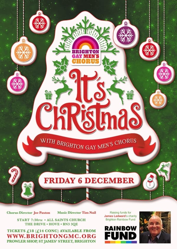 Tonight’s sold out Brighton Gay Mens Chorus concert was dedicated to James Ledward and his family in order to support the Ledward Fund, which is ring fenced within the Brighton Rainbow Fund and available for local homeless charities to draw on, acknowledging that 1/3rd of homeless people in Brighton and Hove identify as LGBTQ+, a situation that James cared about greatly.We have many fine choirs in Brighton and Hove and we should never compare them as they are all unique and important in their own way but it is safe to say that, for me, BGMC are the Daddy of them all. Not just for their numbers but for their constant growth and innovation which, in turn, encourages the other choirs to experiment and move forward also.This evening was a wonderfully non- Christmas ‘It’s Christmas’ show. A quite dark first half, full of thought provoking rich harmonies and constant unexpected dynamics with Act 2 pushing the boundaries up a notch and finishing it off with slick, camp, well loved moves in the encore.It seems unfair to praise anyone individually so, although each member of the audience will have their own list, I shall just name a few of my own personal ones from this evenings performance. Here they are: