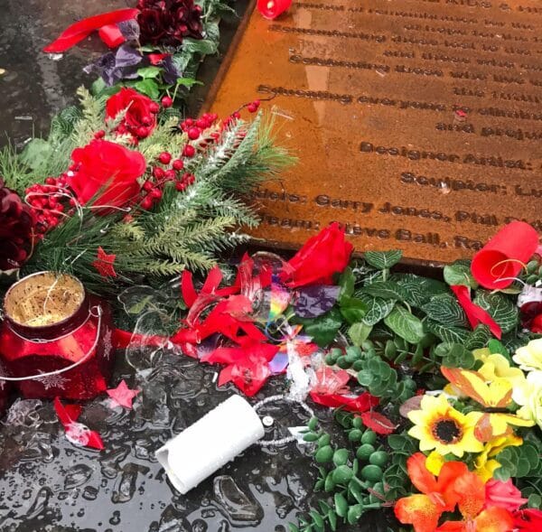 Following a vigil held at Birmingham’s AIDS & HIV Memorial (Ribbons) on World AIDS Day, lanterns, candles, wreathes and flowers left as tributes were vandalised. The World AIDS Day remembrance ceremony was held on December 1 at Hippodrome Square where the city’s memorial – which was unveiled exactly