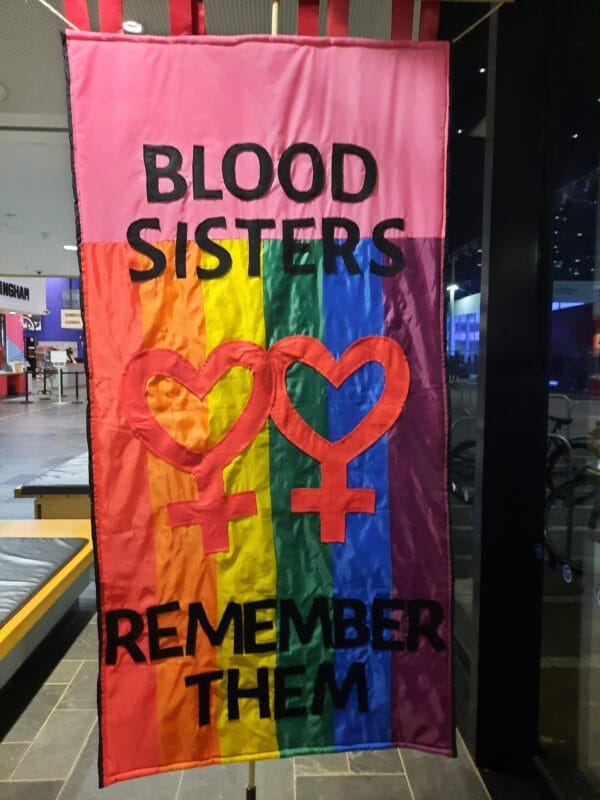 These works of art explore a diverse range of aspects from the history of HIV and AIDS in Birmingham, the UK and internationally, including: access to PrEP, the Don’t Die of Ignorance campaign, and the groups of lesbians who helped care for HIV+ gay men, known as The Blood Sisters. Other quilt panels are more personal, commemorating loved ones.