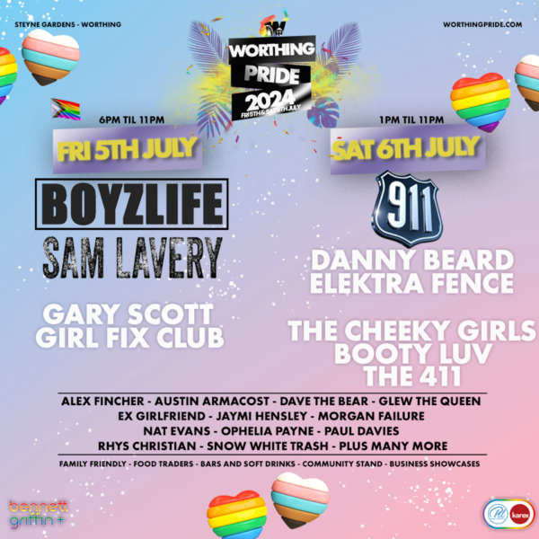 Worthing Pride is to return on Friday, July 5 and Saturday, July 6, bringing the biggest stars – alongside local LGBTQ+ stars – to Steyne Gardens.