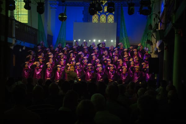 Thirty-seven chorus members individually styled in pink and black costumes sang out against Storm Antoni’s equally punishing weather on Saturday, celebrating queer lives and identities and bringing carnival energy and smiles to spectators lining the parade route. While numbers were a fraction of the usual crowds, those who overcame both the elements and the rail company’s train cancellations were not disappointed.