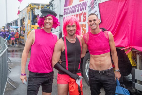 Brighton Gay Men’s Chorus (BrightonGMC) stood shoulder to shoulder with other community groups against the elements on Saturday, August 5 for the Brighton & Hove Pride Community Parade, which assembled on Hove Lawns.