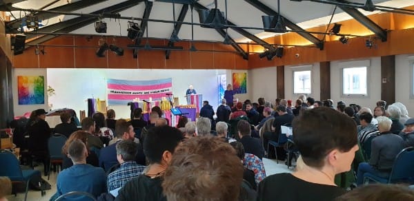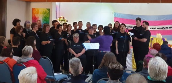 The TDOR service at Dorset garden was standing room only as a series of key community activists spoke about their experiences, their hopes and the reasons why observing TDOR were important. Dr Sam Hall the chair of the Clare project welcomed everyone to the event then the Rainbow Chorus sang the first of a few songs. The Rainbow Chorus also joined up with the Rainbow Chorus Workshop Choir, made up of members of the RC+ the fully inclusive LGBTQ+ singing workshops. This was their first public performance.