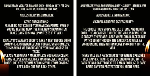 Organised by Dyke Collective Brighton, this vigil is an opportunity to mourn Brianna and countless other trans lives lost to transphobia.