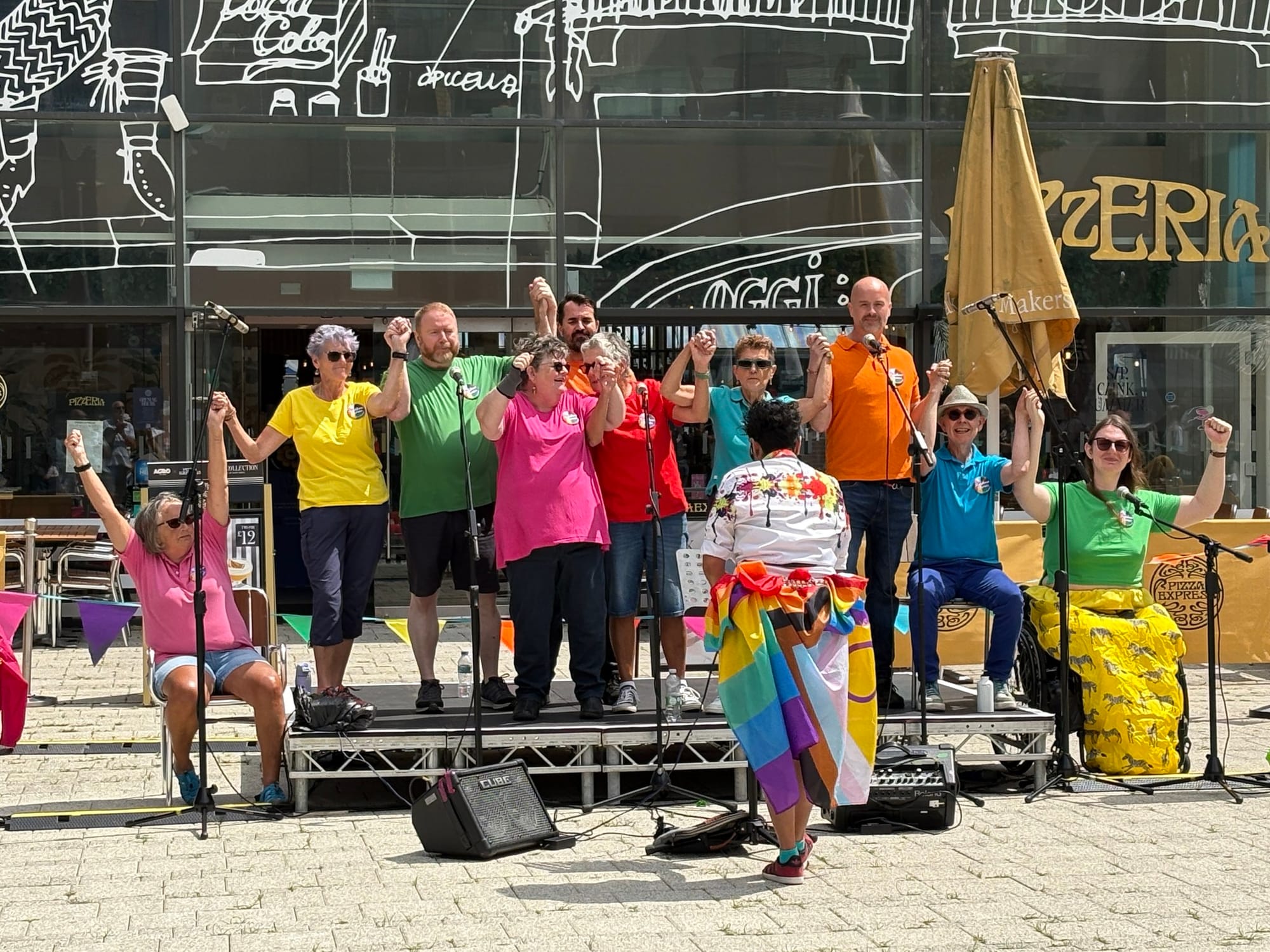 The square buzzed with a live performance from Brighton's LGBTQ+ choir Rainbow Chorus and inspiring speeches, creating a welcoming space for learning and connection.