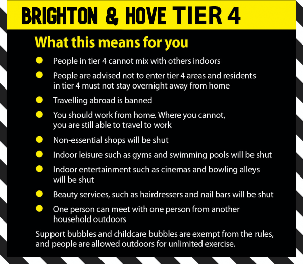 Brighton & Hove to be Tier 4 from Midnight Boxing Day, 26th December.