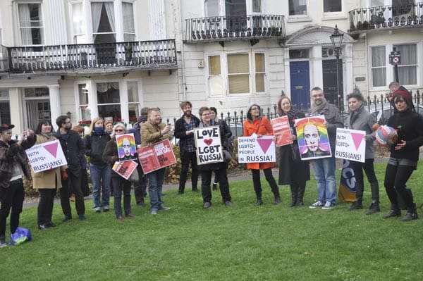 ‘To Russia with love’, solidarity demo in central Brighton on first day of Sochi Olympics