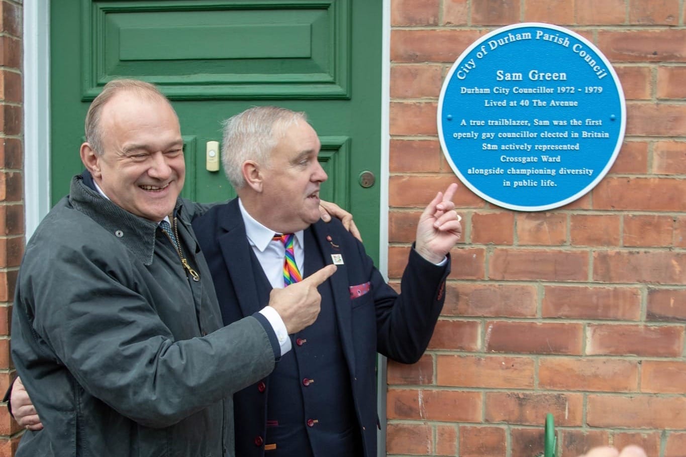 Mel Metcalf, Chair of Durham Pride, was invited to represent the annual Pride event in north east England at the unveiling of a Blue Plaque for Liberal Democrats Councillor Sam Green, the UK’s first openly gay elected politician.