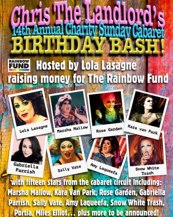 Chris Marshall, landlord at Charles Street Tap, is hosting the 14th Annual Charity Birthday Bash with the support of the cream of the cabaret scene, to raise vital funds for the Brighton Rainbow Fund to distribute to local LGBTQ+ and HIV projects. The Birthday Party kicks off on Sunday, September 3 at 6.30pm.