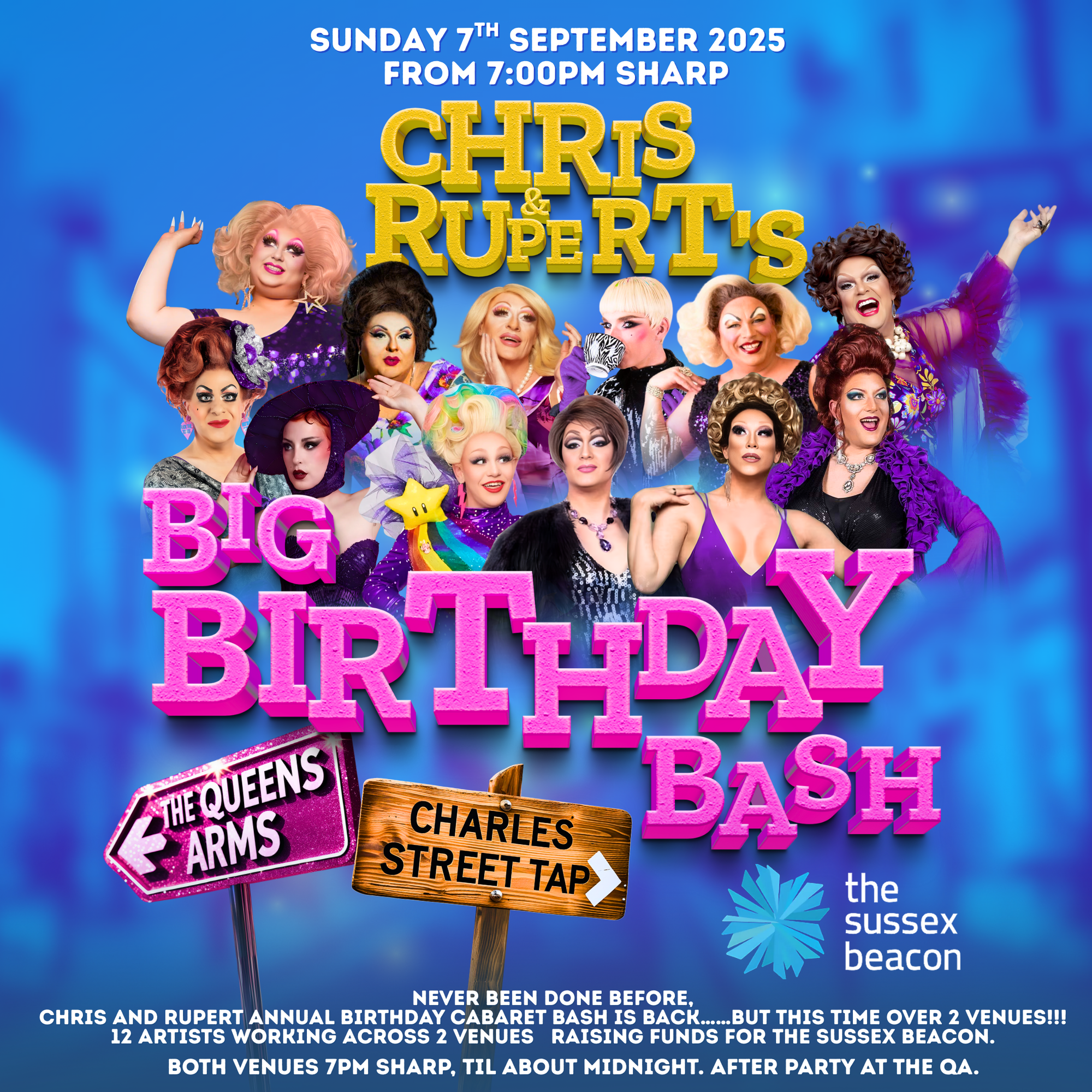 Organisers say: "Chris & Rupert’s BIG Birthday Bash is BACK — and this year, we’re sprinting heels-first between the Queens Arms & Charles Street Tap like the fabulous cabaret athletes we are.