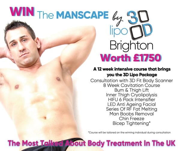 Gscene have teamed up with 3D Lipo Brighton to bring one lucky Gscene reader a complete package of their signature ‘Manscape’, a 12-week intensive course literally turning you into a new person by spring!