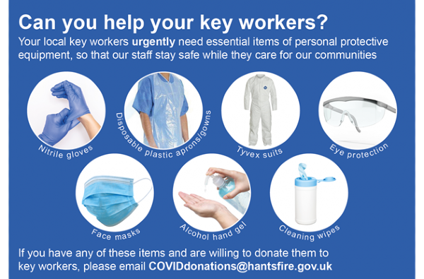 Donations can be taken direct to Hove Town Hall between 7am and 7pm Monday to Friday, where the PPE distribution team will see that they reach frontline staff. Homemade equipment will not be accepted.