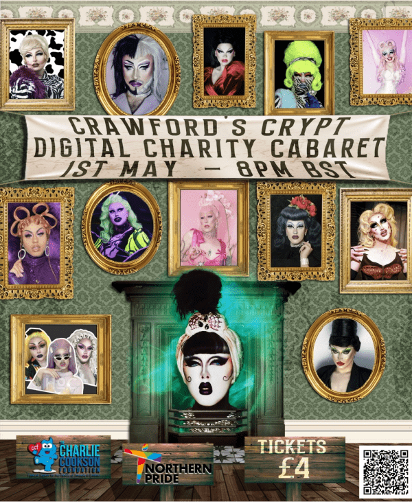 Crawford’s Crypt – A Digital Charity Cabaret fundraiser for two UK-based charities will be taking place on Saturday, May 1 from 8pm.