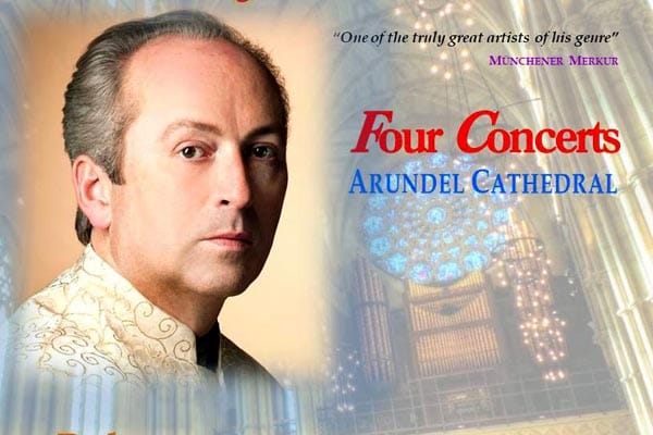 International Celebrity Organist D’Arcy Trinkwon, returns to Arundel Cathedral to play four concerts in June and July.