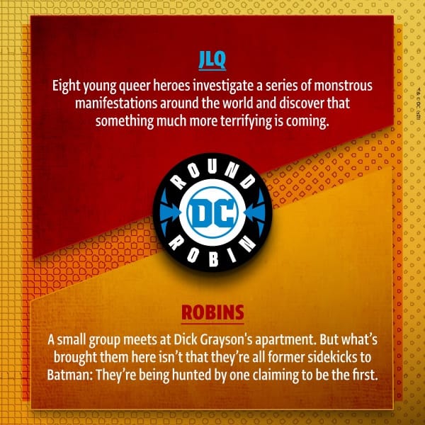 Other titles under consideration include Green Lanterns: Underworld On Fire, a Green Lantern characters teaming of Hal Jordan and Kyle Rayner; Suicide Squad Seven, where Harley Quinn leads a band of super-criminals against an evil cult; Paws Off the Justice League, a super-pet spin off of Justice League and Robins, a story in which all the former Robins meet up to tell stories about their adventures. Voting has already begun and JLQ is up against Robins.