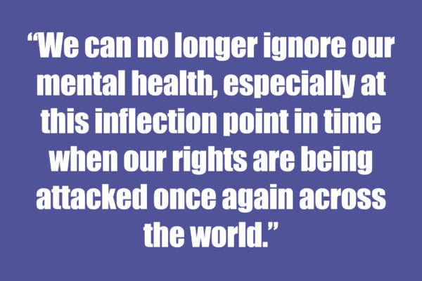We can no longer ignore our mental health, especially at this inflection point in time when our rights are being attacked once again across the world.