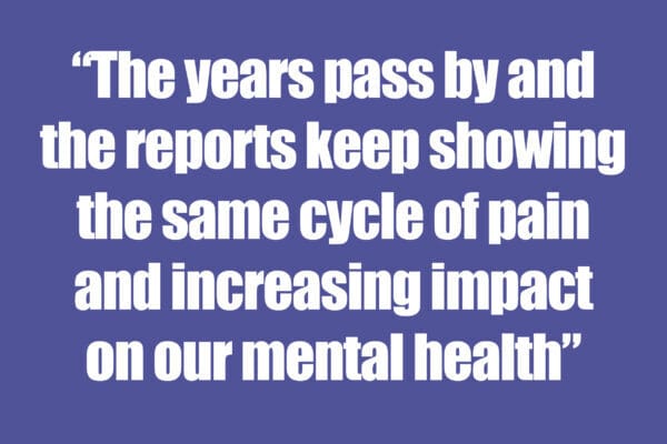 Yet, dig beneath the surface and things aren’t what they quite seem. LGBTQ+ charity Just Like Us reports that LGBTQ+ young people are twice as likely to have depression, anxiety and panic attacks. They are three times as likely to self-harm and twice as likely to consider suicide.[1] Half of respondents to a 2018 Stonewall survey experienced depression.[2] Research done by Drinkaware revealed that the pandemic lockdowns affected the mental health of the queer community more than the population as a whole.[3] The years pass by and the reports keep showing the same cycle of pain and increasing impact on our mental health.