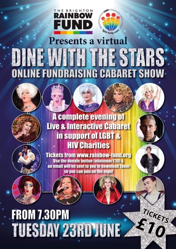 Dine with the Stars, a fabulous online event presented by the Brighton Rainbow Fund and the Brighton & Hove LGBT+ Community Safety Forum, is set to bring glitz and the glamour to living rooms on Tuesday, June 23 from 7.30pm.