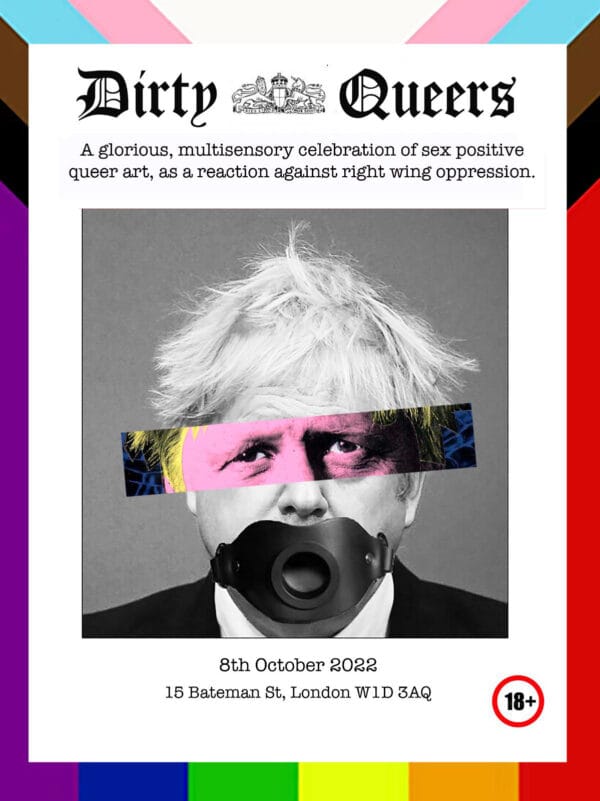 Dirty Queers is a “glorious, multi-sensory exhibition of photography, film, art, and sculpture brought to you by a collective of sex-positive, queer artists” on Saturday, October 8 at London’s Bateman Street Gallery, Soho. There will also be interactive immersive experiences as well as live art being performed throughout the day.