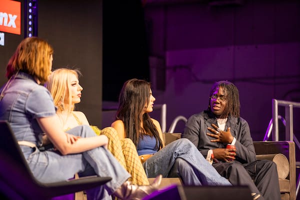 As trans and non-binary people in the public eye, the panel discussed how the publicity has affected their individual journeys, and where they are today. Dakota spoke about feeling insecure on RuPaul’s Drag Race UK, but went on to describe being the first trans woman on Drag Race UK as a group euphoria moment, as people felt represented. Bel said she is “so used to sharing [her] life online,” and that she chooses what she puts out for the public to see. She additionally mentioned her upcoming role as Naomi in Netflix series two of Heartstopper, celebrating Netflix’s commitment to “breaking the boundaries” and reaching new audiences.