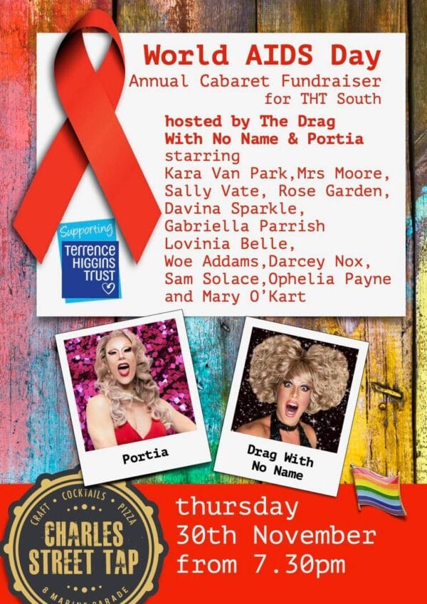 Superstar drag stars Drag With No Name and Portia are to host the annual World AIDS Day cabaret fundraiser which returns to Charles Street Tap, Brighton to raise funds for Terrence Higgins Trust South on Thursday, November 30 at 7.30pm. Charles Street Tap say: “Worlds AIDS Day is December 1 and we’r