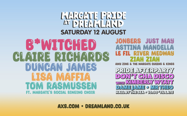 James Penfold, Head of Live Entertainment at Dreamland, said: “We’re so excited to welcome ’90s pop icons B*Witched to headline this summer’s Margate Pride, alongside pop royalty Claire Richards, and musician, Vogue columnist and queer icon Tom Rassmussan. Pride is everyone’s favourite show of the summer, and we can’t wait!”