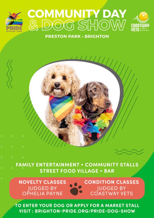 Pride Community Day & Dog Show at Preston Park, Brighton on Sunday, June 8, registrations 11am, shows 12-5pm.