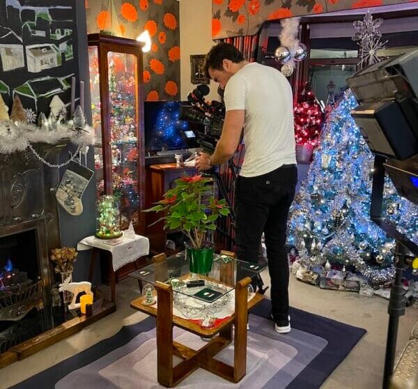 This year though, something a little different! Geoff’s gone international, well, European at least. ZDF, the national German broadcaster, visited his home twice in recent weeks. They came on November 24 to film him emptying his 40 crates of decorations and setting up a couple of trees and again on December 6 to film the finished look.