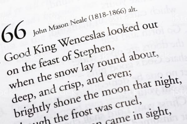 Saint Wenceslaus I (907–935) was duke of Bohemia now the Czech Republic . The carol “Good King Wenceslas” is based on a legend about Wenceslaus and his loyal page Podiven. According to the story, it was a bitterly cold night when they went out to give alms to the poor on the Feast of St. Stephen, Dec. 26. Podiven could not walk any farther on his bare, frozen feet, so Wenceslas urged him to follow in his footsteps. His footprints in the snow stayed miraculously warm, allowing the pair to continue safely together.