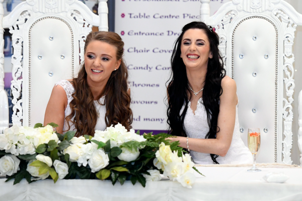 Belfast couple Robyn Peoples, 26, and Sharni Edwards, 27, made their wedding vows at 2pm this afternoon in a hotel in Carrickfergus