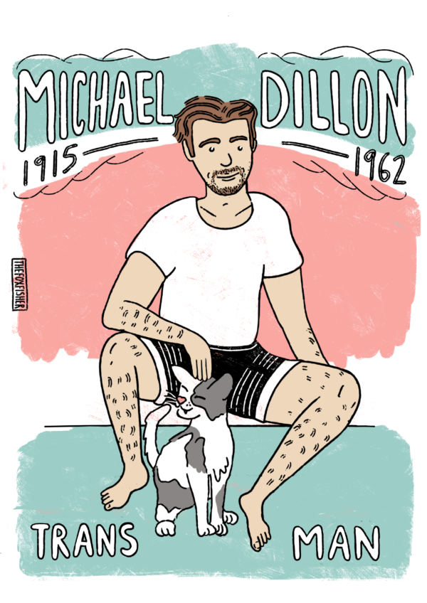 Two extensive projects are concentrated on the history of trans persons. Trans People in History series by the artist and activist Fox Fisher is a series of illustrations and short texts about trans people from the 16th century to today. Fox says that they were motivated to create the work because: “As a trans person who transitioned in my late 20s I love learning about trans people in history.