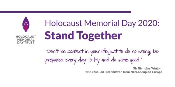 Stand Together – Holocaust Memorial Day Public Meeting, Wednesday 29th January 2020. 18:15 – 20:00. Brighthelm Centre, North Road, Brighton, BN1 1YD.