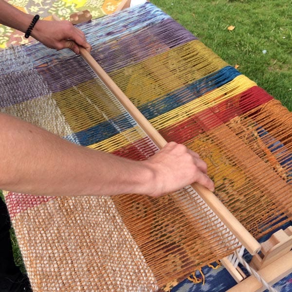 Imogen Di Sapia of Brightmoon Weaving, said: “Homelessness is a complex umbrella term for what is a very real, vibrant and large community, especially here in Brighton. I met so many wonderful people, and the loom was really calling to people to connect with their stories, journeys and histories, and in its own special way, facilitated people to just talk and weave. It was a huge privilege to be part of this event, and the outcome is this Homeless Pride Community Blanket (Pictured above) which was made by many hands.”
