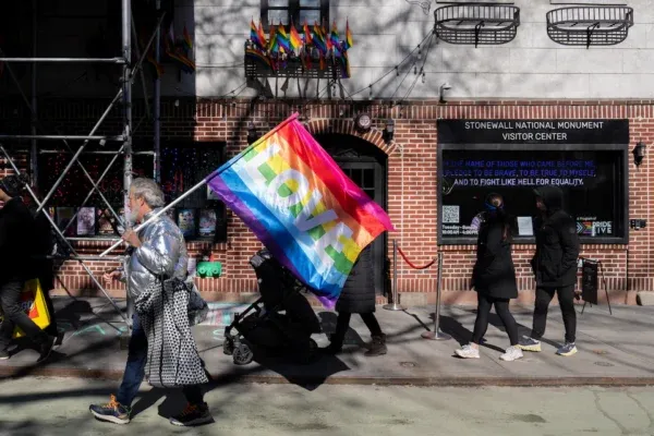 Hundreds gather to protest erasure of trans references from Stonewall National Monument website