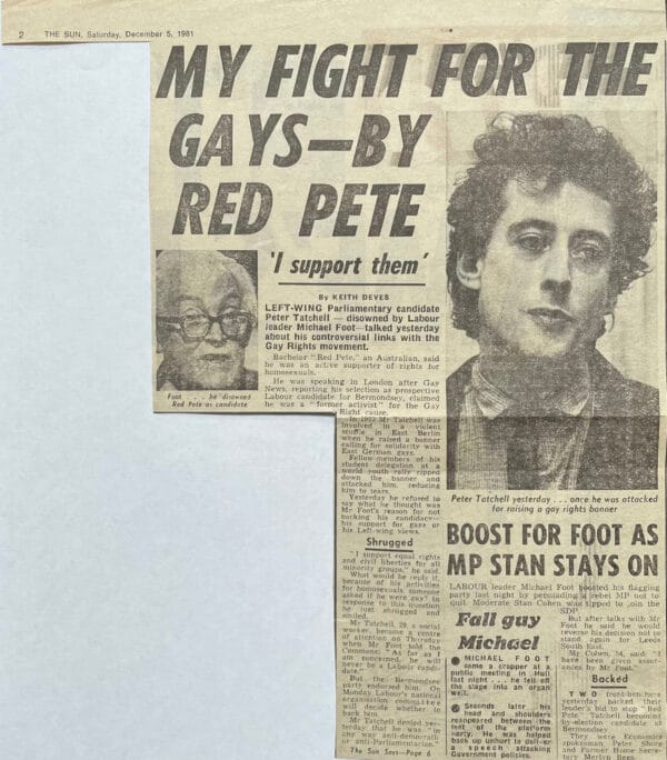 Peter Tatchell was the gay Labour candidate in the Bermondsey by-election, which took place on 24 February 1983.