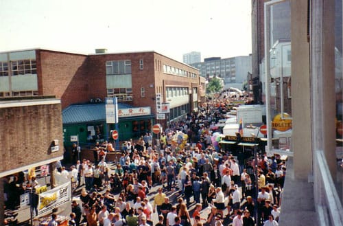 Between 1983 and 1996, a programme of activities, performances and acts called Five Days of Fun was held in Birmingham over August bank holidays. These events took place at the various gay venues in the city and even included an It’s A Knockout contest between teams representing the main bars. These events marked the first time that the managers of these clubs and bars would collaborate. Five Days of Fun, unlike Birmingham Pride today, was held completely behind closed doors within the venues, rather than together in a public space.