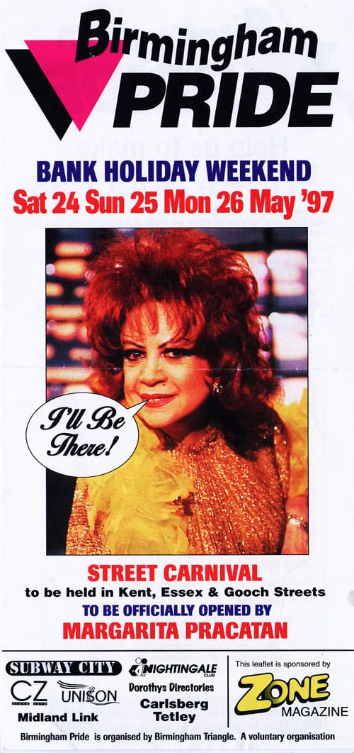 Bill Gavan – the owner of the former Subway City dance club in Livery Street – was the person to suggest organising a Birmingham Pride, and in November 1996, a small committee came together. Fundraising began for the entirely community-financed Pride.