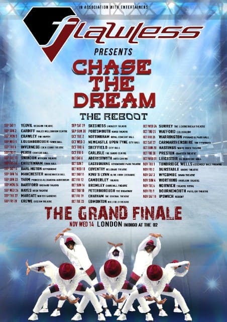“IT’S A ROLLER-COASTER journey,” dancer Marlon ‘Swoosh’ Wallen exclaims when i ask about his dance troupe Flawless‘ upcoming tour Chase the dream: the reboot. It was at least thirty degrees and, despite the heat, the 2009 Britain’s Got Talent alumni was practicing relentlessly for his dance crew’s latest crazy tour. “You’re gonna be happy, excited, inspired,” he enthuses, with an infectious glee tingling in his voice. “When you watch our show, you don’t just see dancing, you walk away with a message. Don’t expect to see just street dance. We really wanted our show to be about more than just watching someone dancing; we wanted a show for people to be part of. It’s very diverse and appeals to the mass, because dance is universal.” The hip-hop dance group have come far from their days competing in the popular show Britain’s got talent, and by the sounds of it, have been through their own roller-coaster journey.