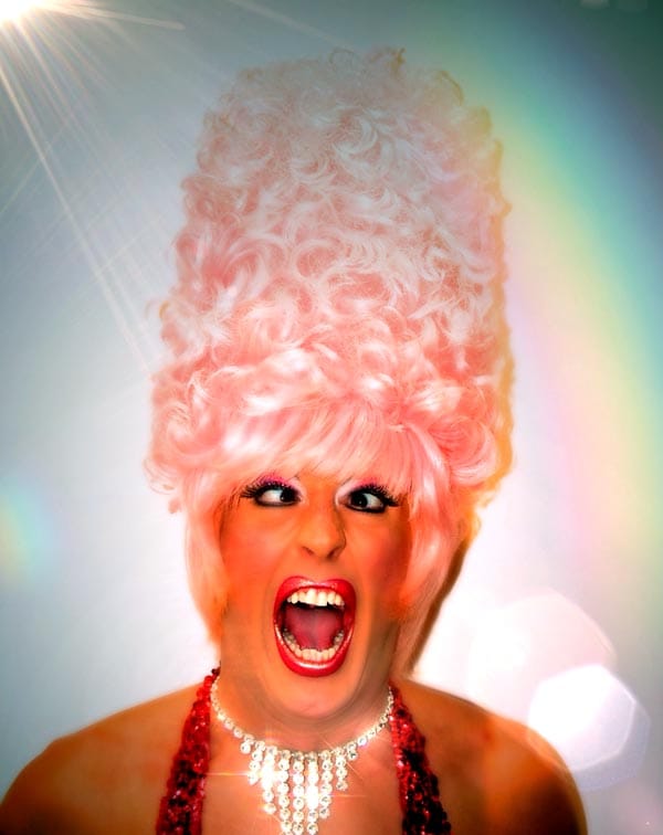 After school he says he wasted 2 years at college . “Then at 18 I ran away to Brighton to be with all the other homosexuals, managed bars for 7 years, left those to become a drag queen and the rest is history ! And 18 years later, I’m still chucking my silly self around stages and getting paid for the privilege.”
