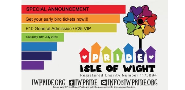 Isle of Wight Pride have launched early bird tickets for next year’s event. This is offer will only be available until the end of January 2020 or until the allocation of tickets has been achieved, so get in early to avoid disappointment.